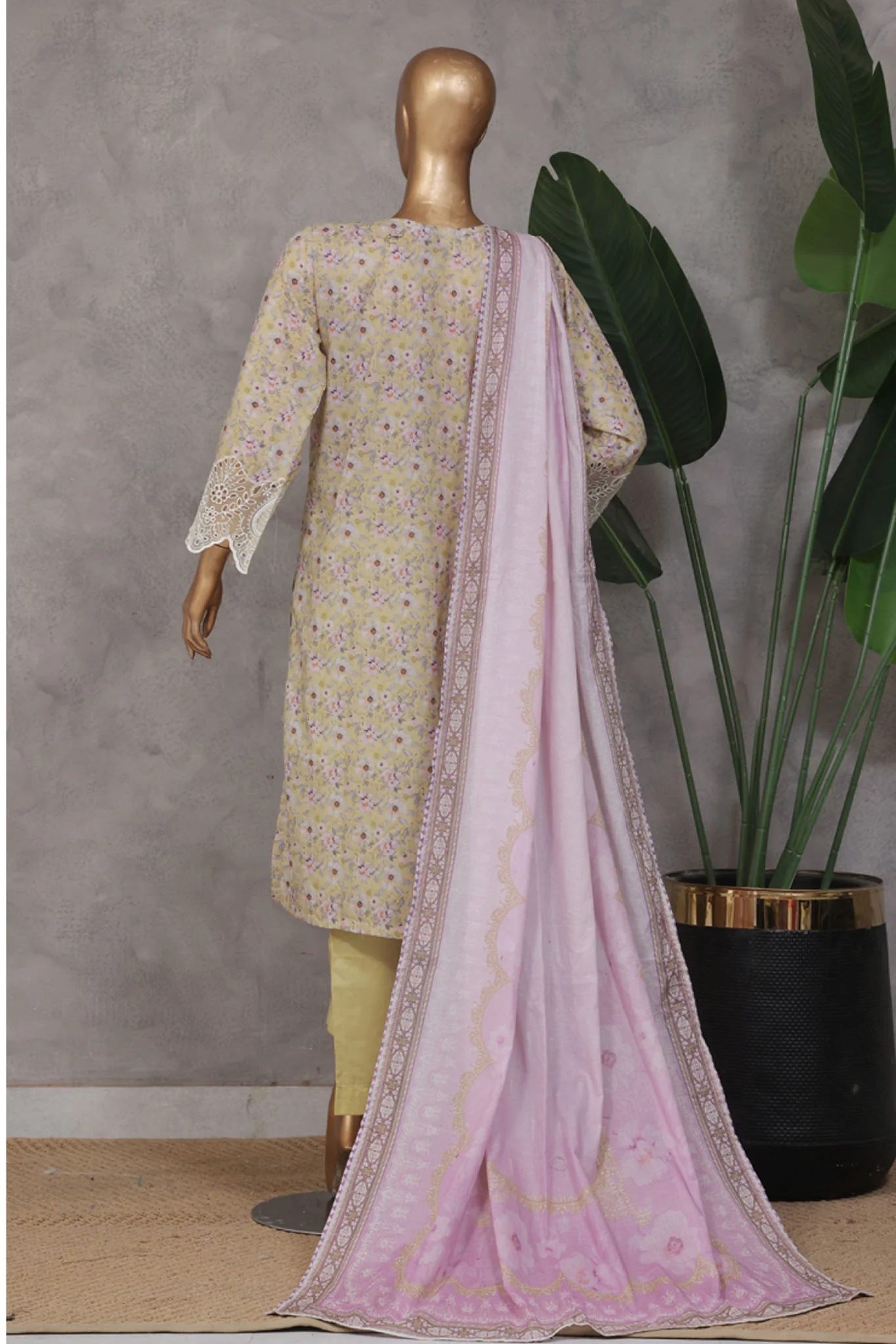 Bin Saeed Stitched 3 Piece Exc Emb Lawn Vol-02 Suit-SM-2102-Yellow