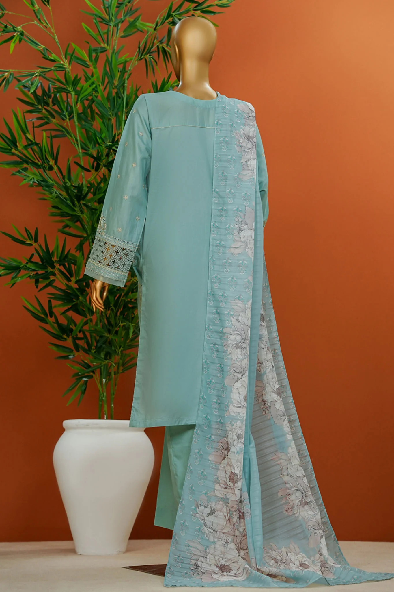 Muse By HZ Stitched 3 Piece Emb Cotton Slub Vol-01 Suit-SSE-103-Aqua